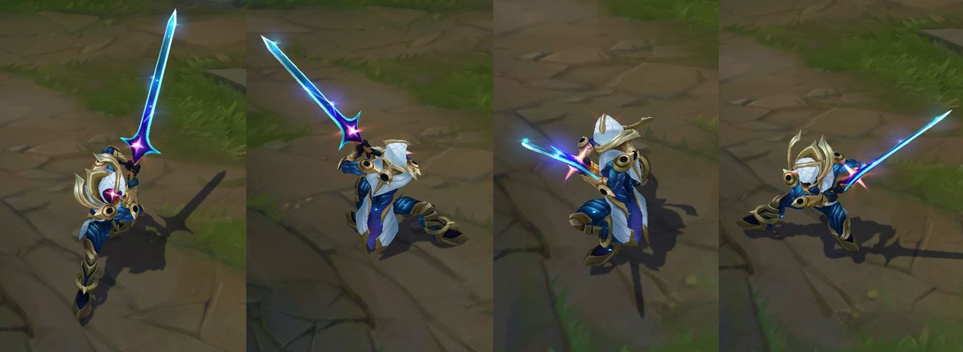 가격: 1350RP (서사급) 출시일: 2017년 7.7 패치 스킨 시리즈: 우주 우주 시리즈 1차 (5.20 패치) : 우주의 지배자 카사딘 2차 (7.7 패치) : 우주 검객 마스터 이 황혼 우주 자야 여명 우주 라칸 3차 (8.16 패
