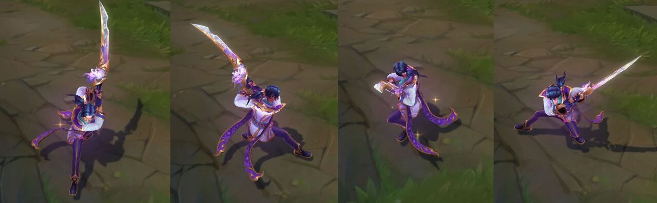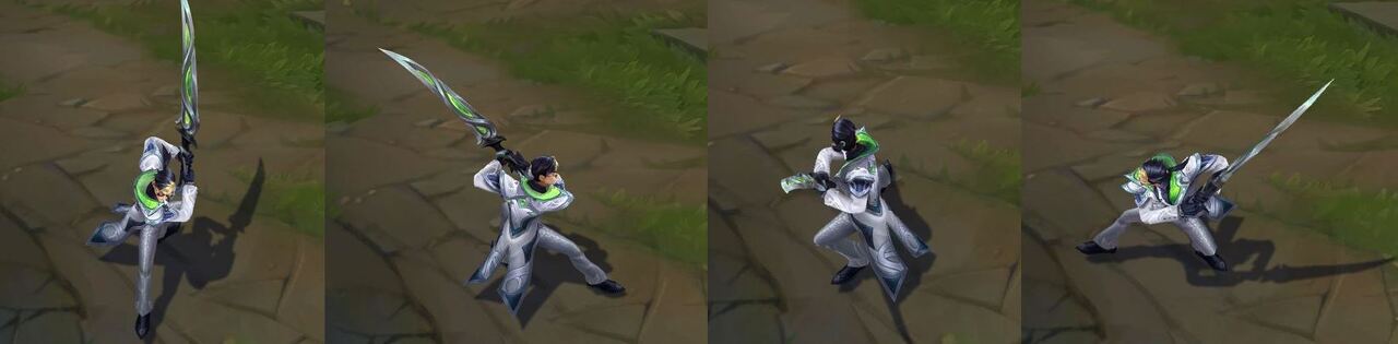 가격: 1350RP (서사급) 출시일: 2017년 7.7 패치 스킨 시리즈: 우주 우주 시리즈 1차 (5.20 패치) : 우주의 지배자 카사딘 2차 (7.7 패치) : 우주 검객 마스터 이 황혼 우주 자야 여명 우주 라칸 3차 (8.16 패