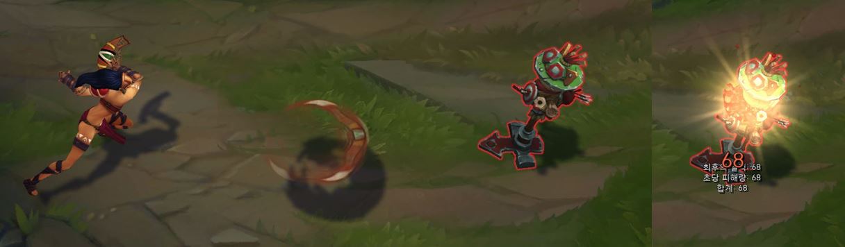 공격 투사체, 적중 이펙트에는 큰 변화가 없습니다.