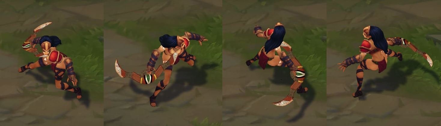 가격: 1350RP (서사급) 출시일: 2019년 9.1 패치 스킨 시리즈: 불의 축제 불의 축제 시리즈 1차 (시즌 초반 출시) : (1.28 패치) 쉔 아칼리 (4.20 패치) 칼리스타 (4.21 패치) 엘리스 쓰레쉬 2차 (시즌 5~6 출시)