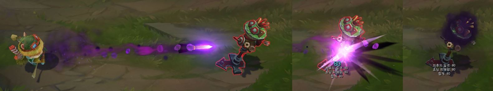 치명타 공격에도 티모의 모션이나 이펙트에는 큰 변화가 없습니다.