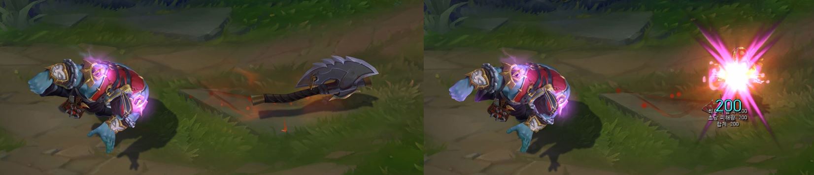 치명타 공격 시, 도끼로 내려찍는 모션으로 바뀌게 됩니다.