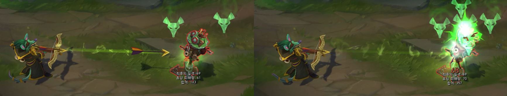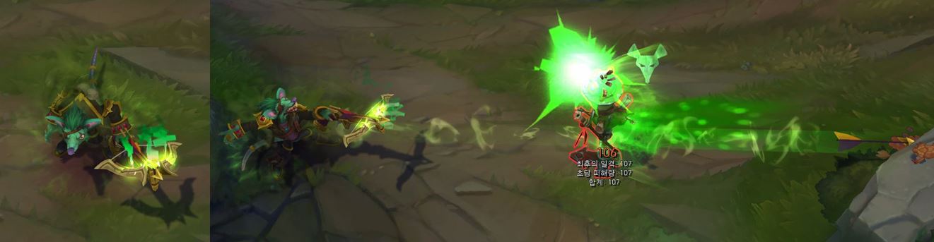 치명타 공격 시, 트위치의 모션과 투사체에는 변화가 없지만