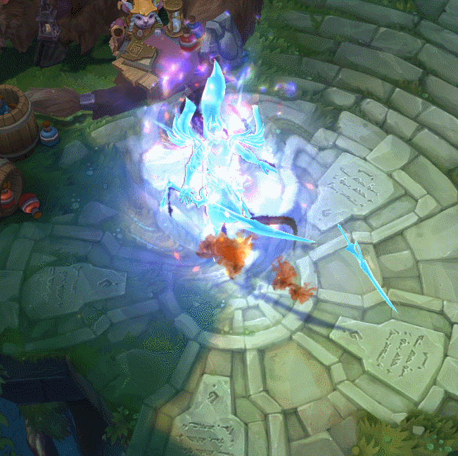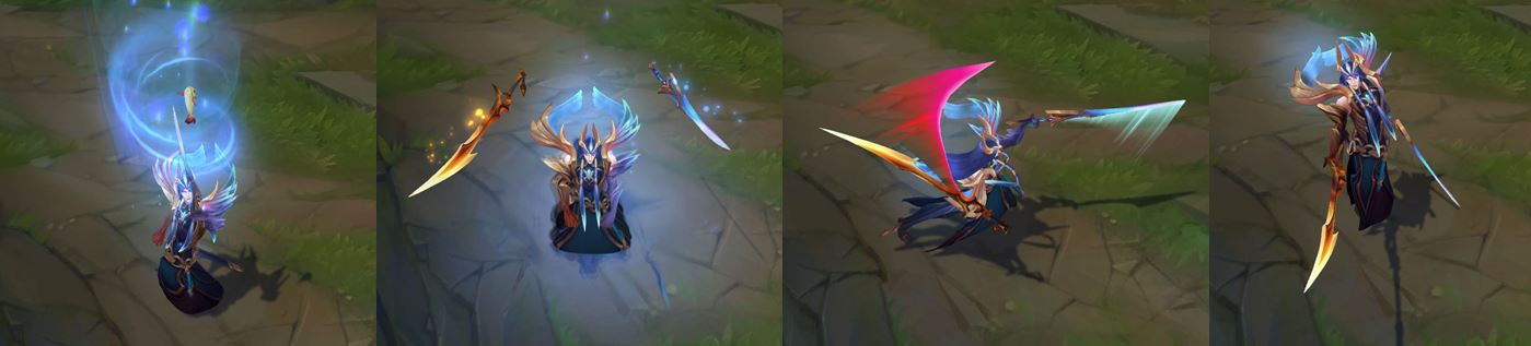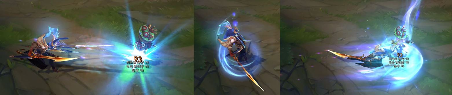 빛의 인도자 시리즈 '빛의 인도자'라는 명칭답게 푸른 색상 위주의 모델링과 멋진 일러스트, 깔끔한 스킬 이펙트가 특징인 시리즈입니다. 어둠의 인도자 '야스오'와 '케인'과 같은 몇몇 인기 스