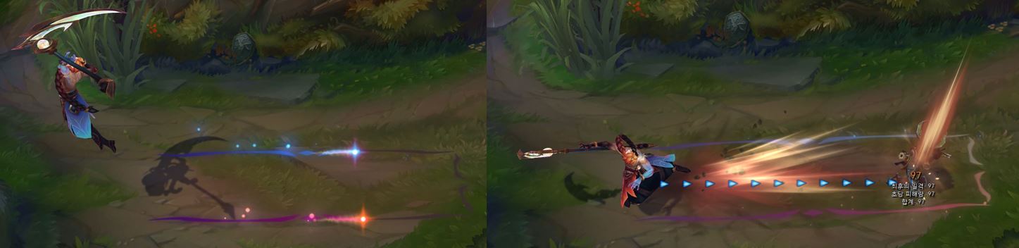 적중한 적에게 이펙트가 더 크게 나타나게 됩니다.