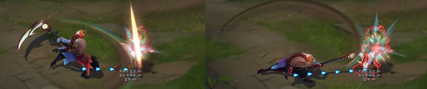 치명타 공격 시, 낫 뒷부분으로 찍어내리게 되며