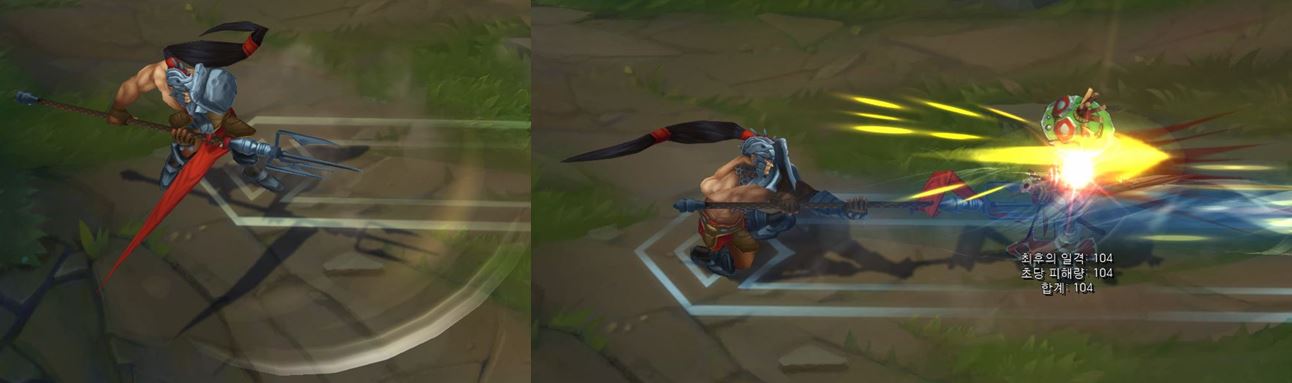 신짜오가 창으로 내려찍는 모션으로 바뀌게 됩니다.