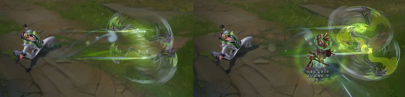 치명타 공격 시, 드레이븐의 공격 모션이 바뀌게 되며
