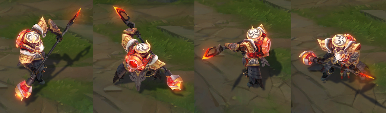가격: 1820RP (전설급) 출시일: 2020년 10.1 패치 스킨 시리즈: 메카 삼국 메카 삼국 시리즈 1차 (10.1 패치) : 잭스(전설급) 드레이븐 레오나 세트 가렌 [+ 프레스티지 에디션 (신화급)] 일러스트 스킨 설