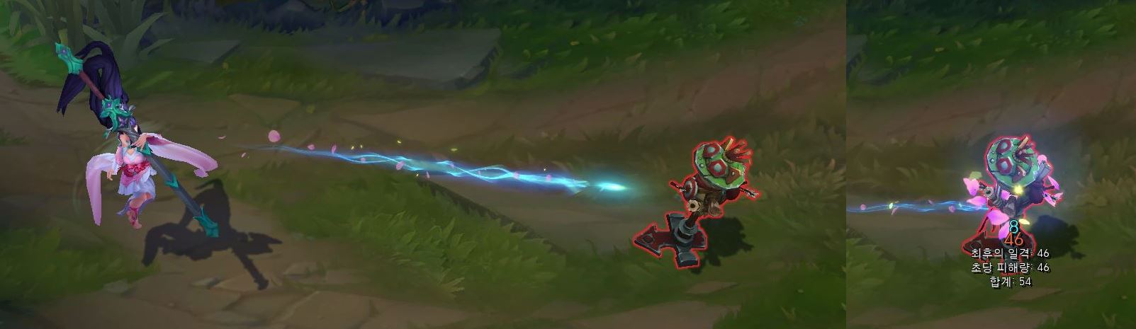 공격 투사체가 하늘색으로 바뀌며, 꽃잎 이펙트가 나타나게 됩니다.