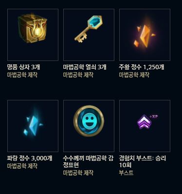 | 업적 2 | 700점 | 10승 경험치 부스트 + 신화 정수 5개 |