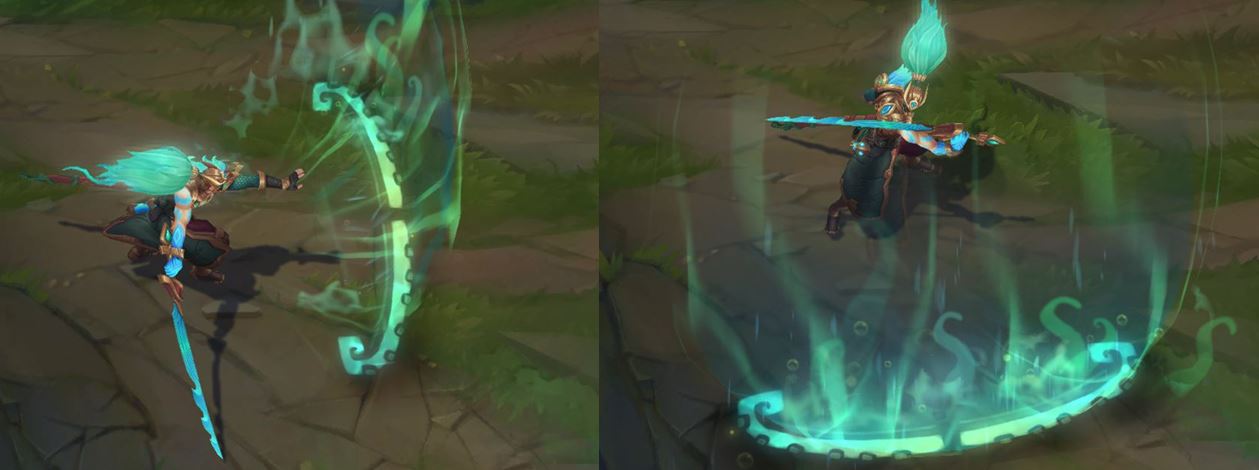 야스오가 물보라를 일으키며 칼춤을 추다가,