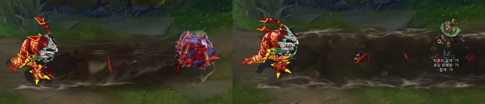 스킬 사용에서 보이는 폭죽 이펙트와 사운드가