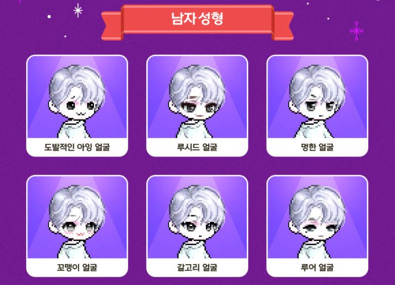 남자 성형 6종, 여자 성형 6종