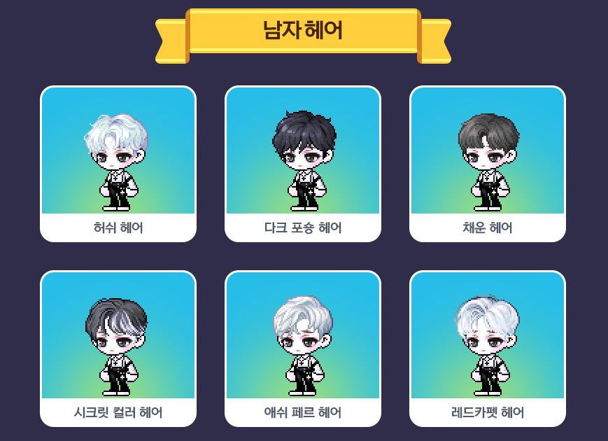 남자 헤어 6종, 여자 헤어 6종