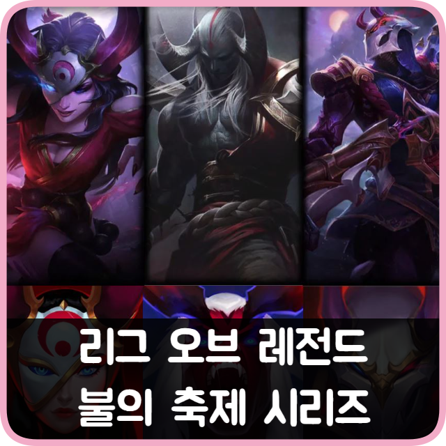 가격: 2019 프레스티지 포인트 100개 (신화급) 출시일: 2019년 9.1 패치 스킨 시리즈: 불의 축제 불의 축제 시리즈 1차 (시즌 초반 출시) : (1.28 패치) 쉔 아칼리 (4.20 패치) 칼리스타 (4.21 패치) 엘리스 쓰