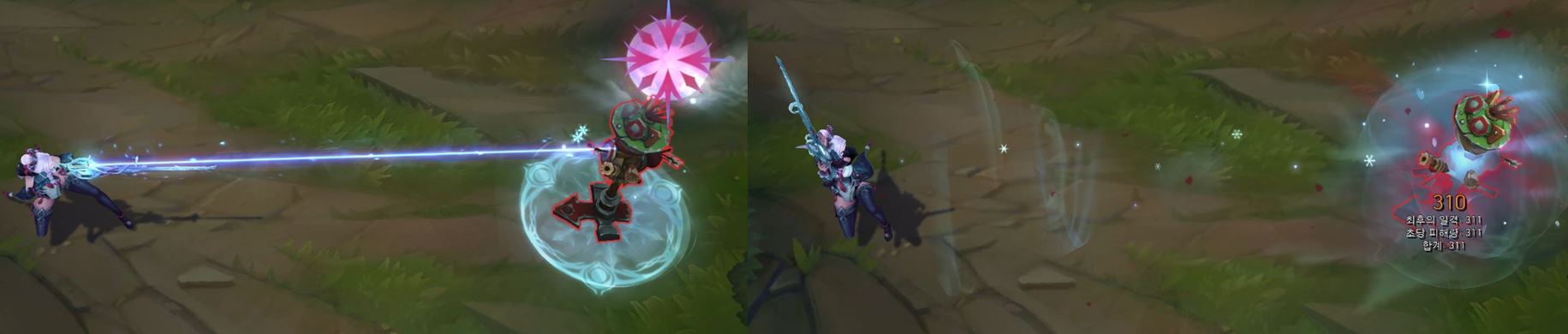 치명타 공격에도 케이틀린 모션에는 큰 변화가 없지만,