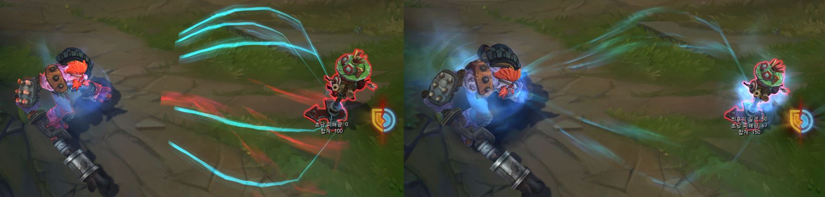 적중한 적에게 이펙트가 더 크게 나타나게 됩니다.
