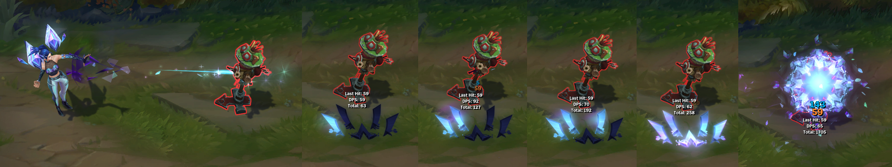 치명타 공격에도 카이사의 모션에는 별 차이가 없으며,