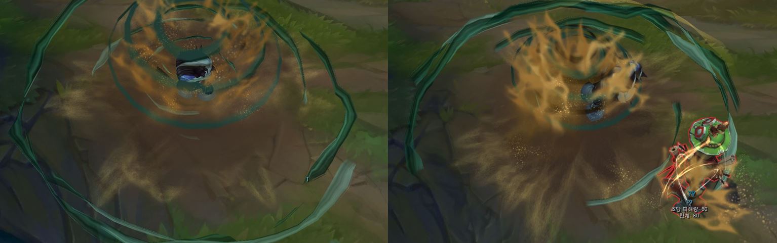 적중한 적에게 이펙트가 더 크게 나타나게 됩니다.