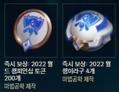 | [패스 구매 시 즉시 획득] | 200개 | 2022 월챔이라구 4개 |