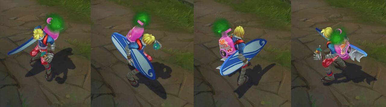 가격: 975RP (에픽급) 출시일: 2010년 12월 6일 일러스트 스킨 설명: 물론 머리 스타일도 촌스럽고 싸구려 자외선 차단제를 바르긴 했지만, 신지드에겐 티키 머그컵이 있습니다. 결국 뭐가 다시 유행