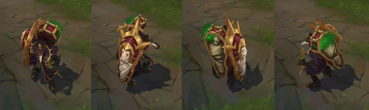 가격: 750RP (로얄급) 출시일: 2016년 6.9 패치 스킨 시리즈: 어둠의 징조 어둠의 징조 시리즈 시리즈 이전 출시 : 유령 피들스틱 (2010년 3월 출시) 회색 워윅 (2010년 7월 출시) 장의사 요릭 (2011년 6월 출