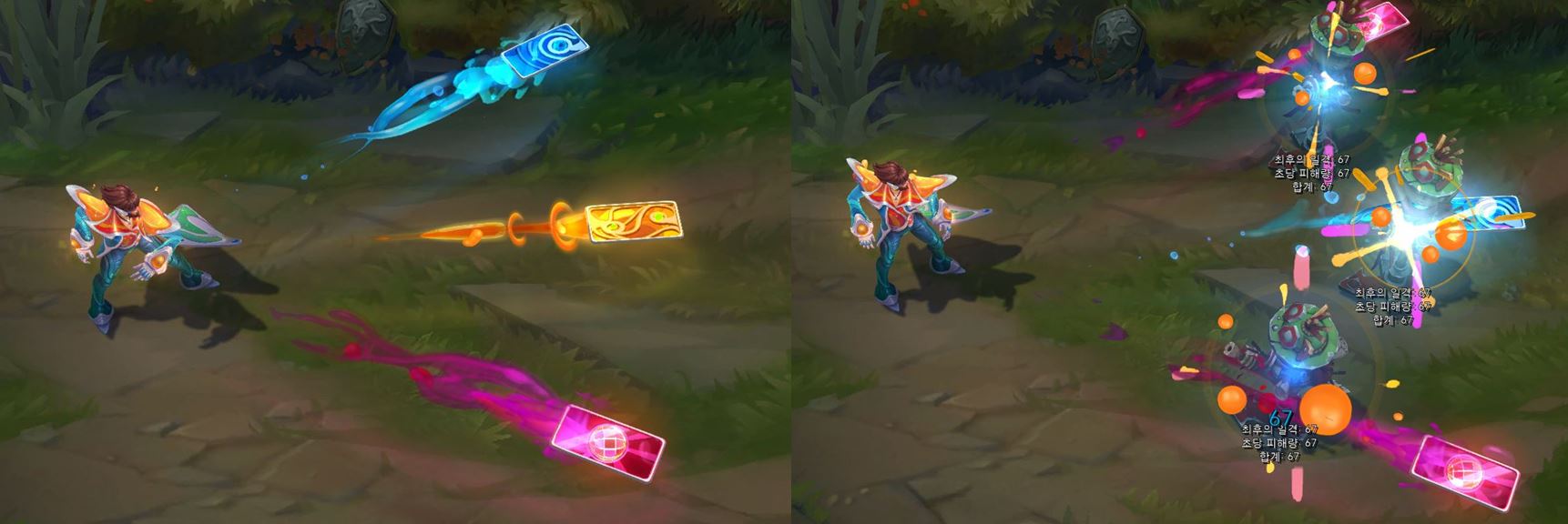 적중한 적에게 이펙트가 더 크게 나타나게 됩니다.