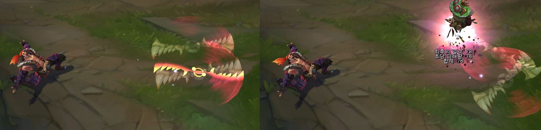 적중한 적에게 이펙트가 더 크게 나타나게 됩니다.