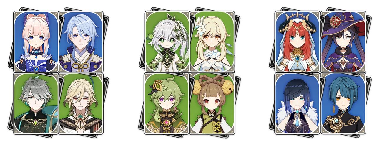 [원신] 풀 원소 캐릭터 특성 가이드 : 캐릭터별 특성작, 추천 스킬 레벨