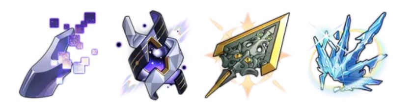 각 속성 아이콘을 클릭하시면 속성별 캐릭터 모음집으로 이동합니다. 정렬 기준 1. 물리 - 화염 - 얼음 - 번개 - 바람 - 양자 - 허수 속성 2. 5성 & 4성 캐릭터는 다른 행에 배치 3. 이름순 정렬이 아닌