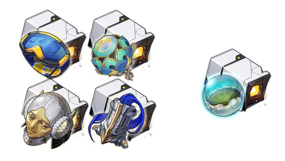 | 머리 | 핸드 (=장갑) | 바디 | 신발 | 차원 구체 | 연결 매듭 |