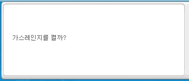 부엌으로 이동하여 초록색 테이블에서 가스레인지를 켜줍니다.
