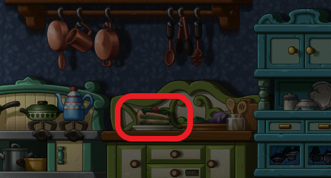 2층 부엌으로 이동하여 초록색 테이블 위의 케이크를 클릭해줍니다.