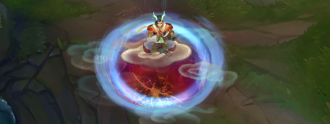 이즈리얼이 구름 위에서 명상을 가부좌를 하다,