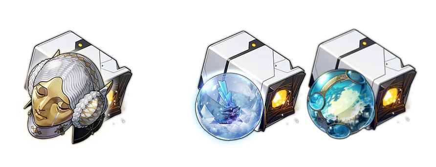 | 머리 | 핸드 (=장갑) | 바디 | 신발 | 차원 구체 | 연결 매듭 |