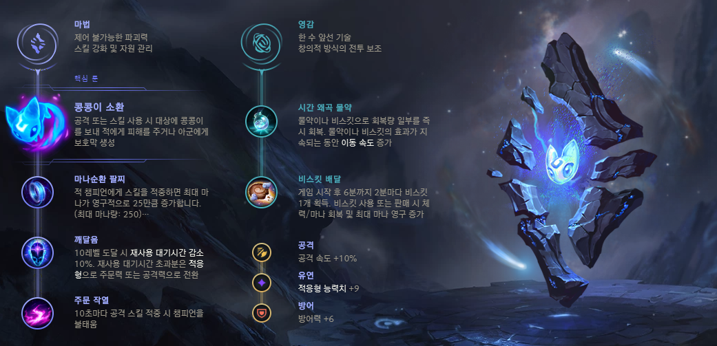 서폿 룰루는 콩콩이 소환&수호자 두 가지 선택지가 있습니다.