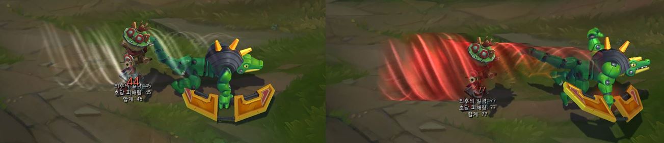 적중한 적에게 발생하는 이펙트가 더 크네 나타납니다.