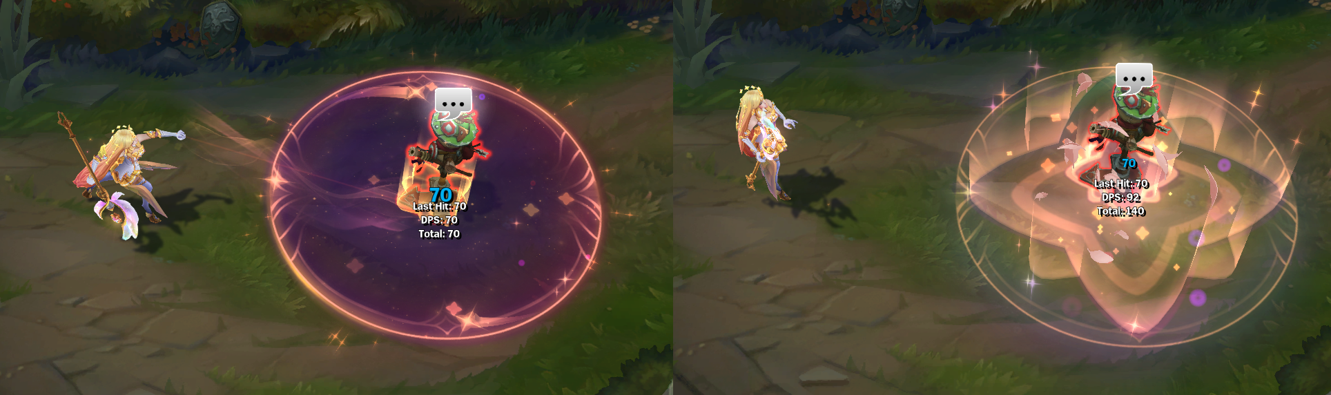 주변의 깃털과 별빛 이펙트가 더 많은 편입니다.