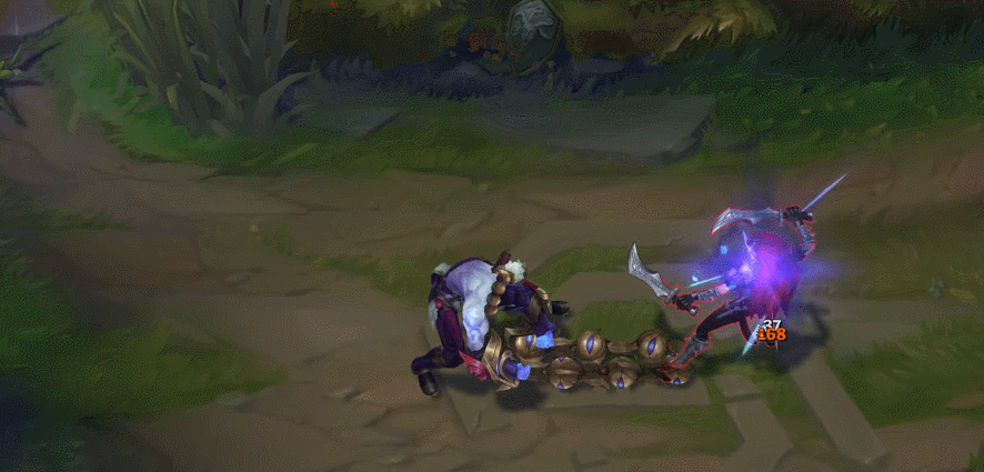 Q 스킬과 마찬가지로 W: 국왕시해자도 비슷한 사운드가 들리며,