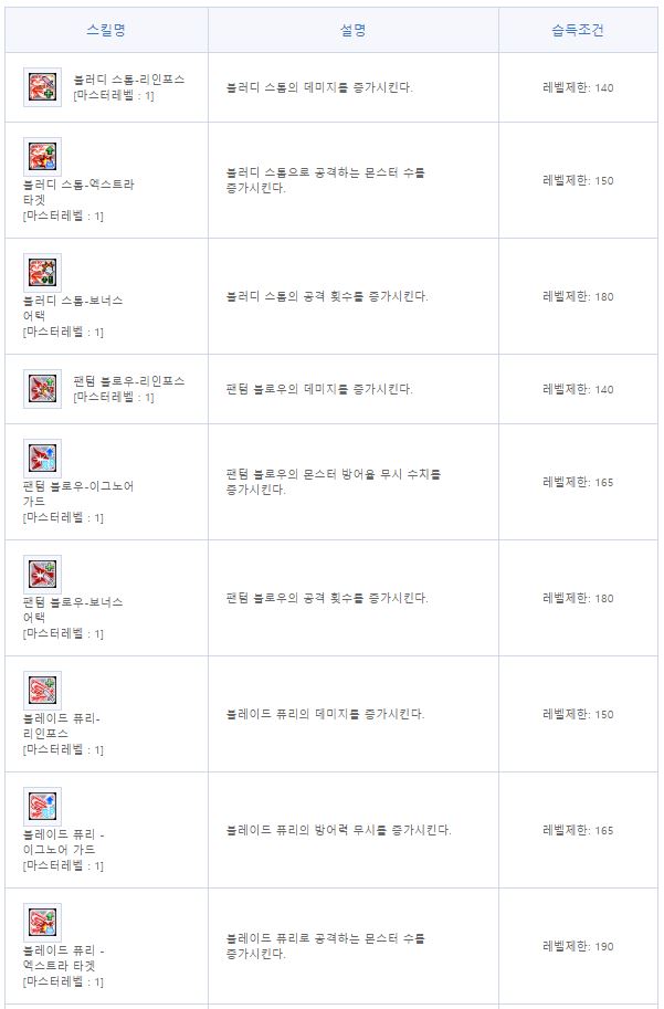 | 상태 이상에 걸린 적 공격시 데미지 N% 증가 | 10~9% | 8~6% | 5~4% | 3~1% | |
