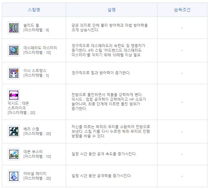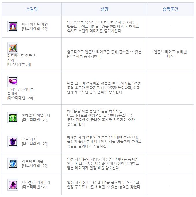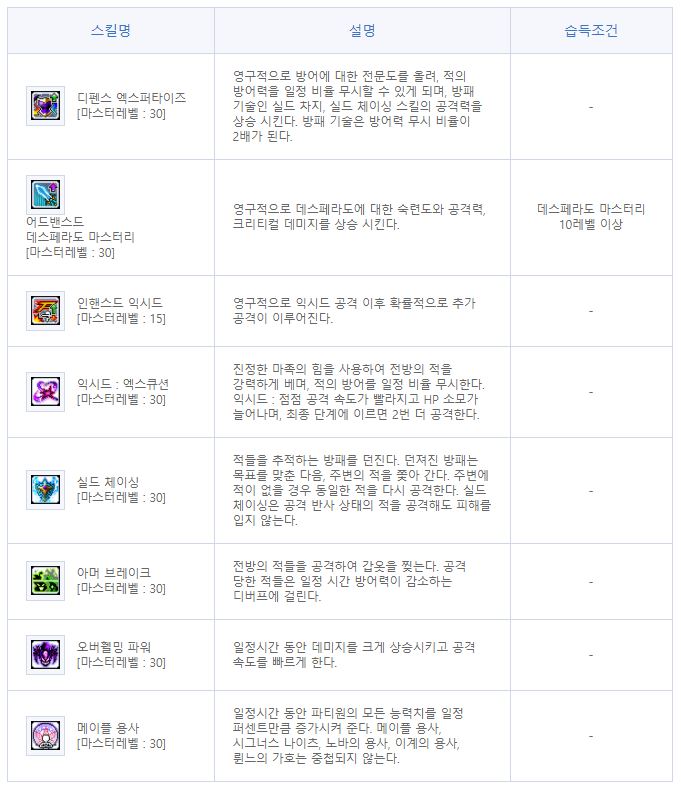 | 팔라딘 | 아크메이지(불,독) | 신궁 | 섀도어 | 캡틴 | |