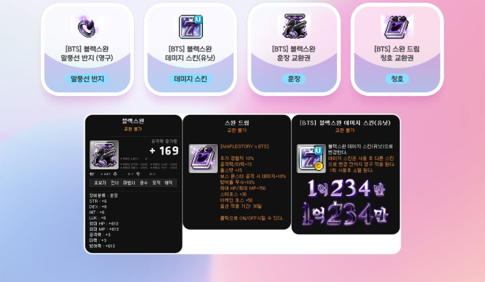 특히 한벌옷인 [BTS] 러브 인 스완이 몇십억 메소로