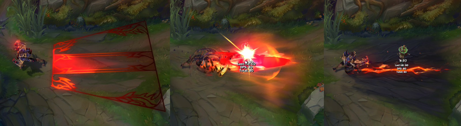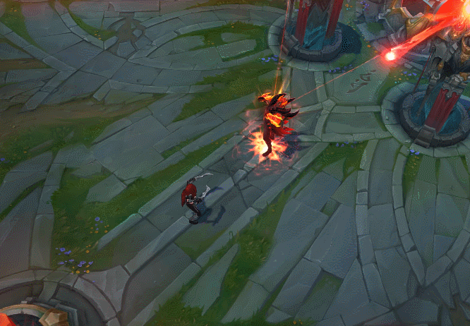 붉은빛 이펙트가 발생하며, 땅바닥은 검게 그을립니다.