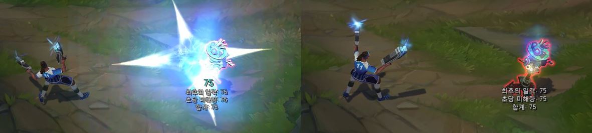 공격 모션과 투사체도 마찬가지로 기본 스킨과 동일합니다.