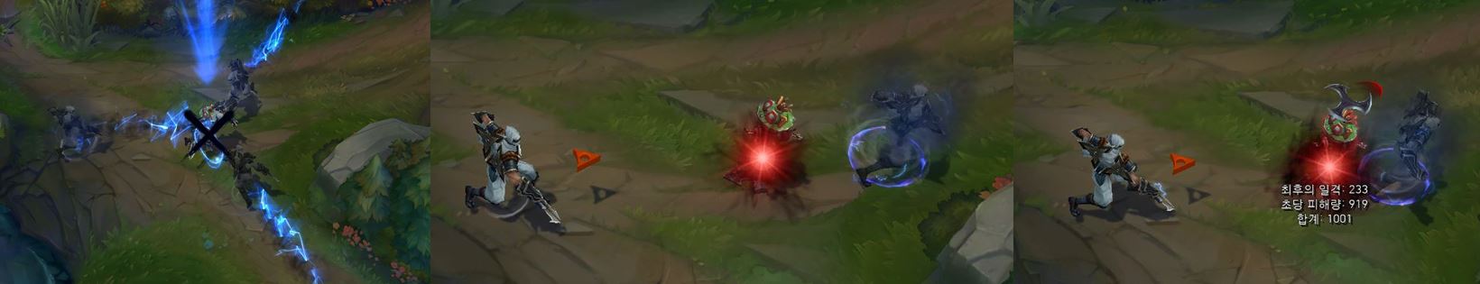 스킬 이펙트에 푸른빛 전류가 흐르고,