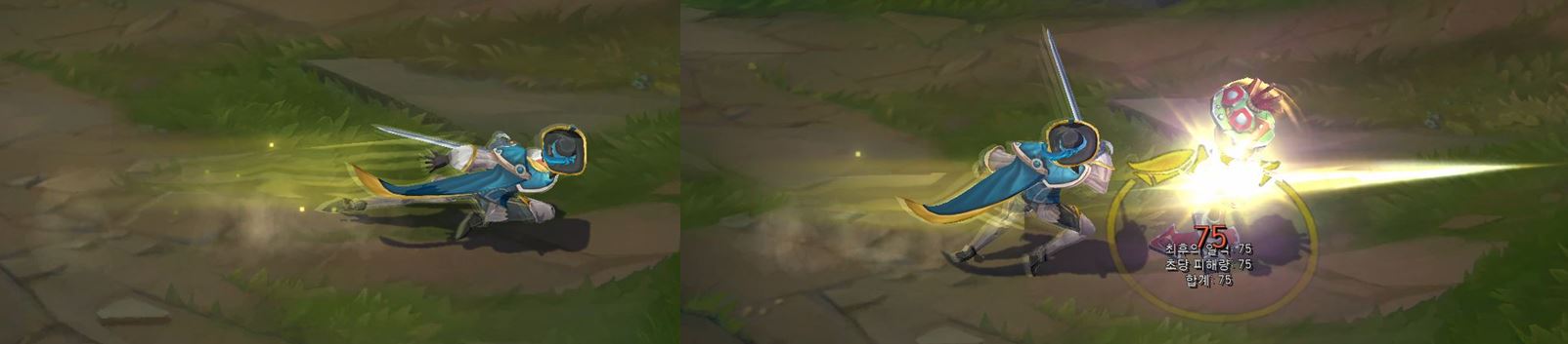 피오라가 칼을 찌르는 모션으로 변경됩니다.
