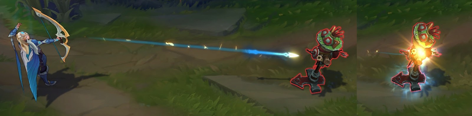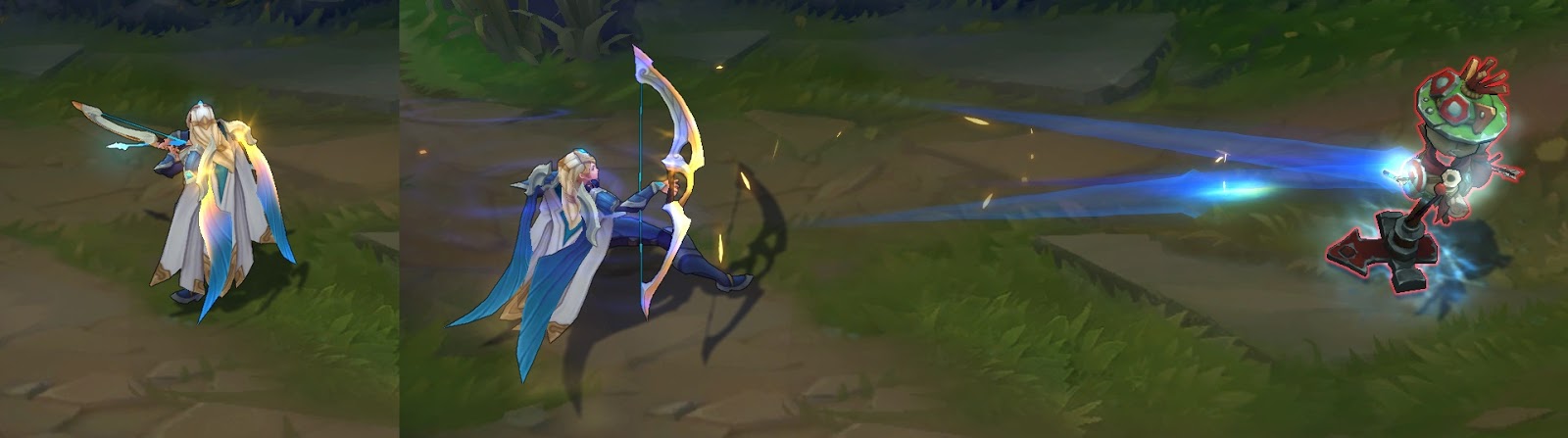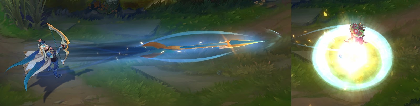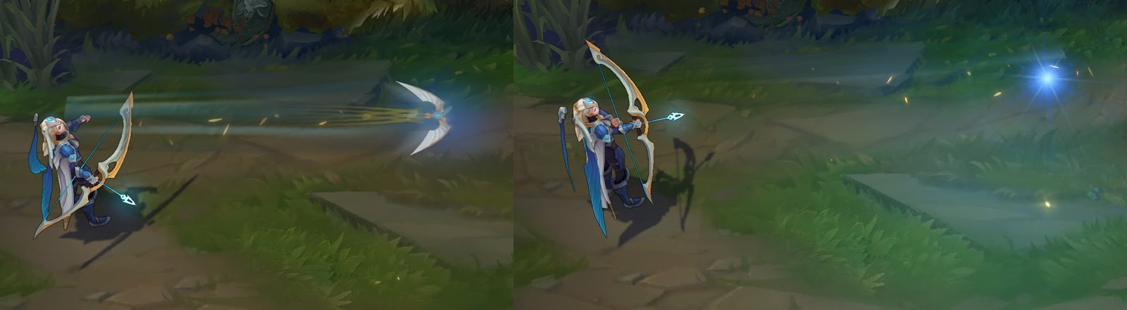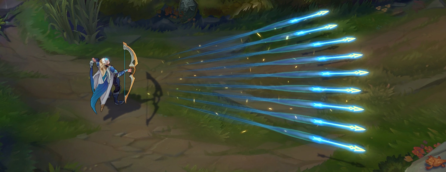 푸른빛 화살이 발사되는 궤적에 금빛 이펙트가 추가됩니다.