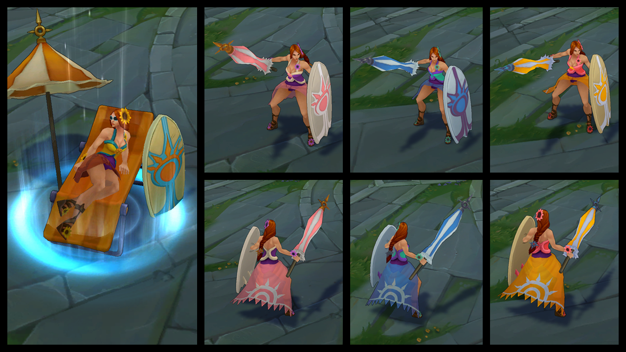 가격: 975RP (에픽급) 출시일: 2013년 3.11 패치 스킨 시리즈: 수영장 파티 수영장 파티 시리즈 1차 (2.14 패치 & 3.11 패치) : 직스 & 그레이브즈 레넥톤 리신 레오나 2차 (5.12 패치) : 드레이븐 자크 룰