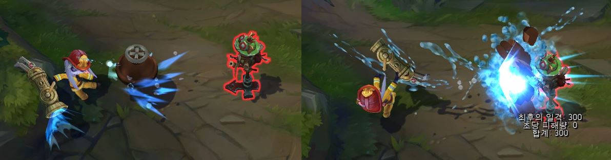 치명타 공격 시, 적중한 적에게 물 이펙트가 더 크게 나타납니다.